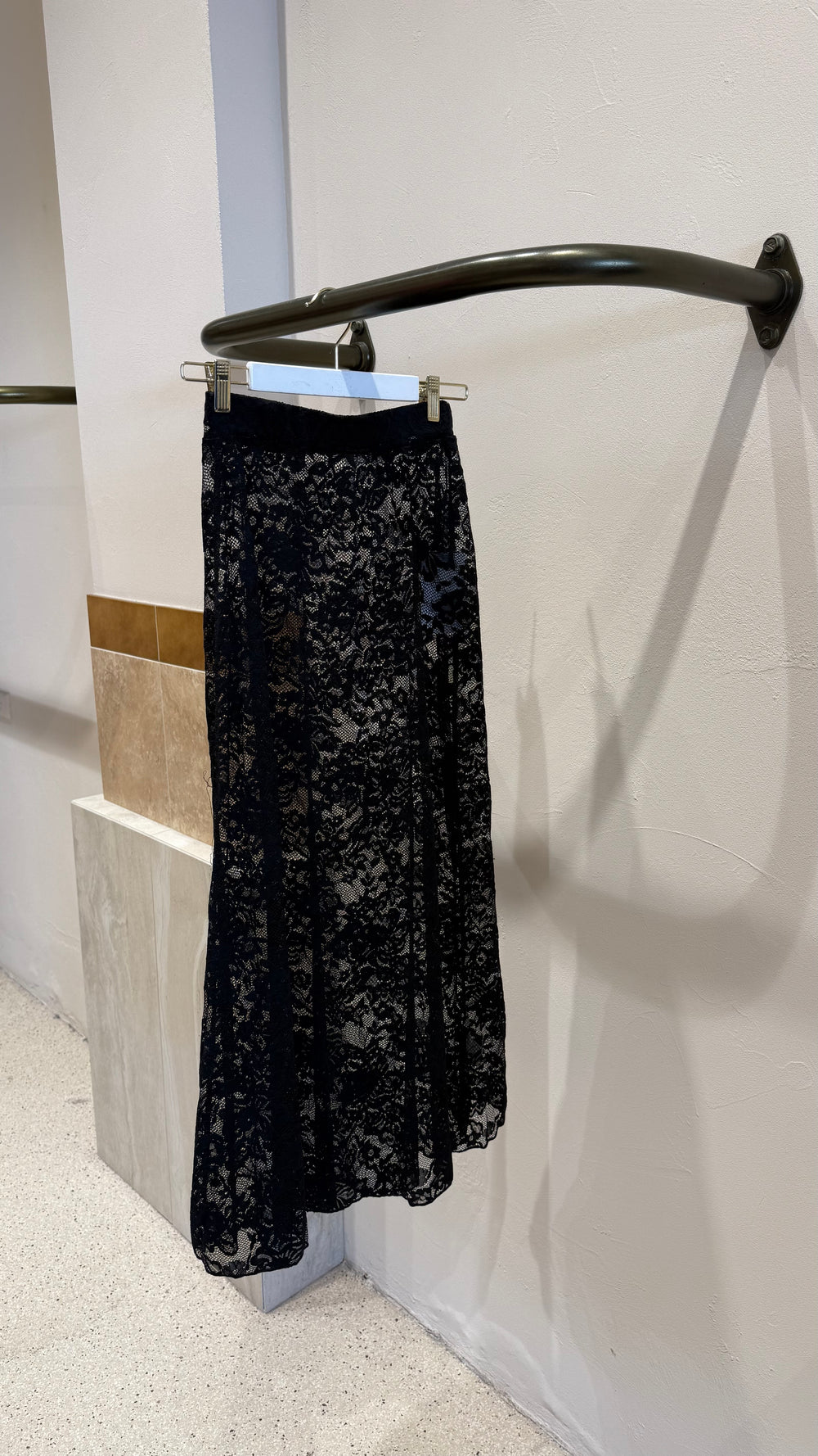 The Ella Lace Skirt in Black features an elasticated waistband, midi length and sheer lace fabric. Pair with your go-to undergarments and heels for a chic and on-trend look, or a baggy t-shirt for an elevated everyday look!