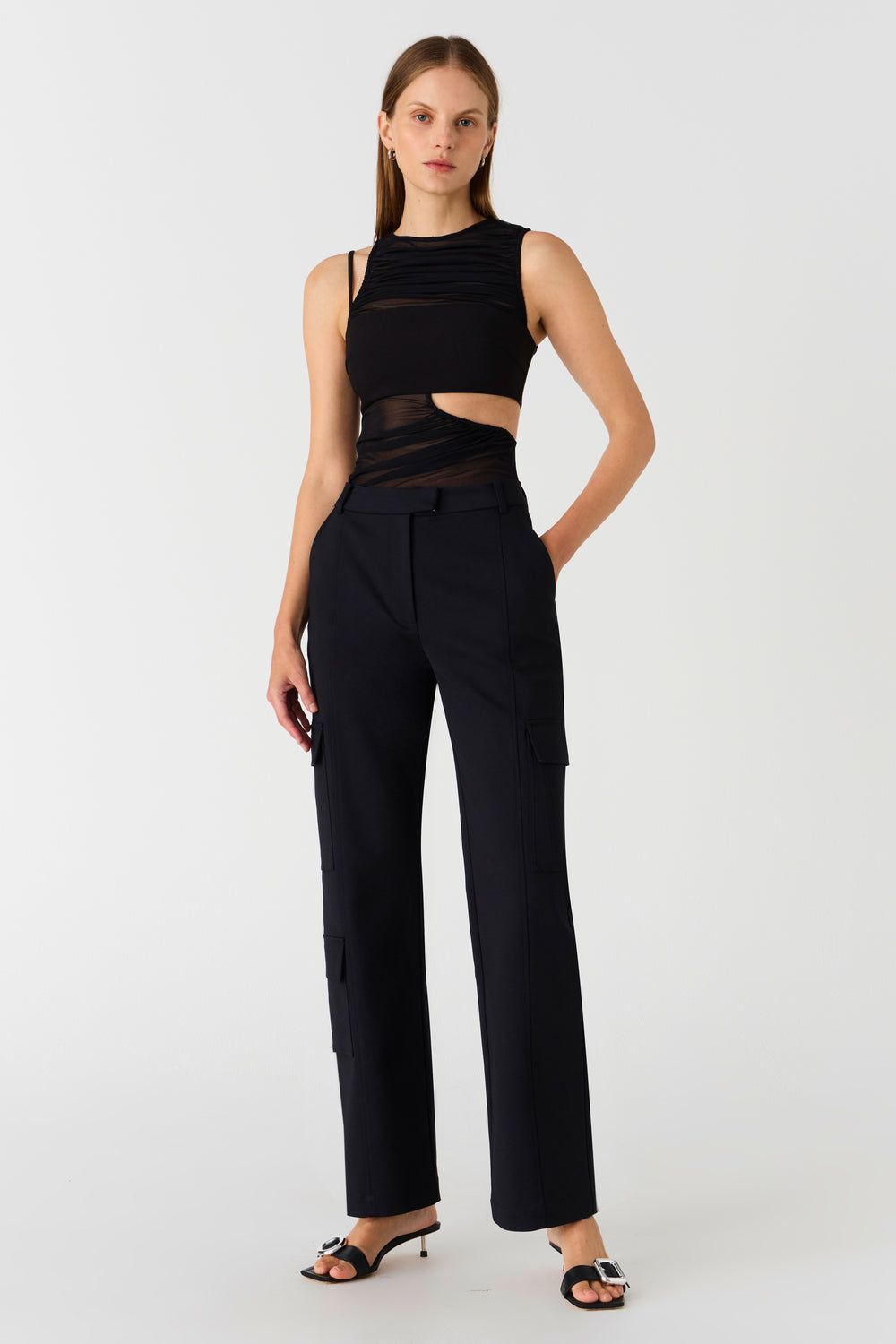 The Esme Suiting and Mesh Top in Black, a sensual and elevated choice for any evening occasion.