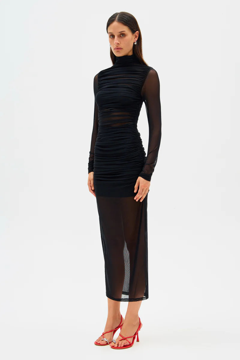 MISHA Petunia Mesh Midi In Black
