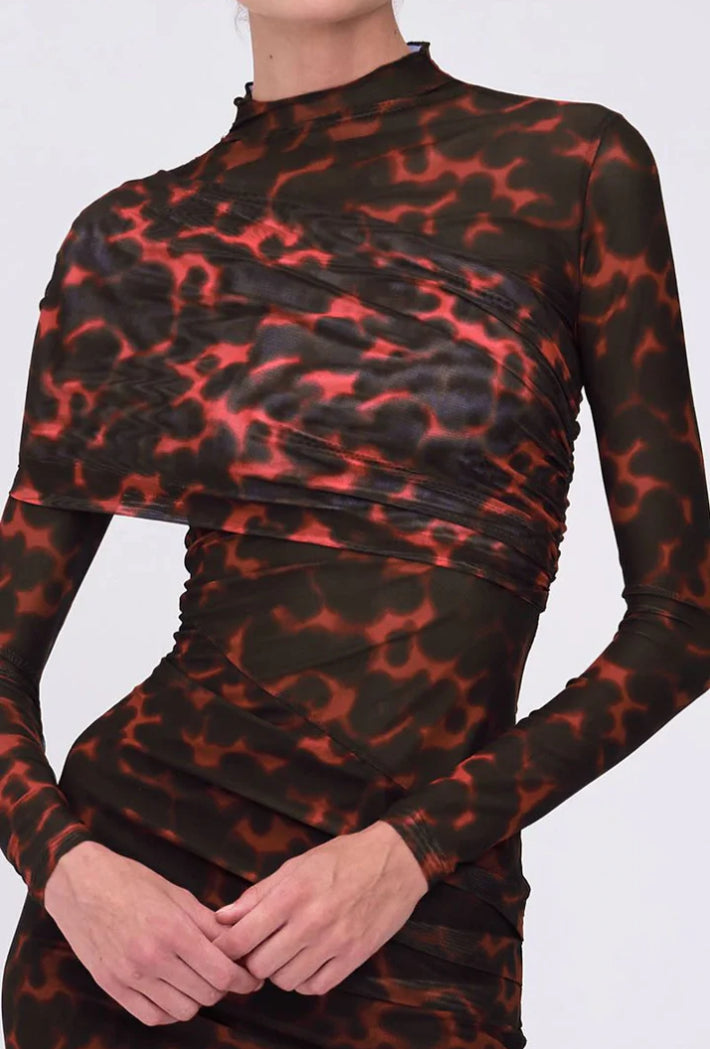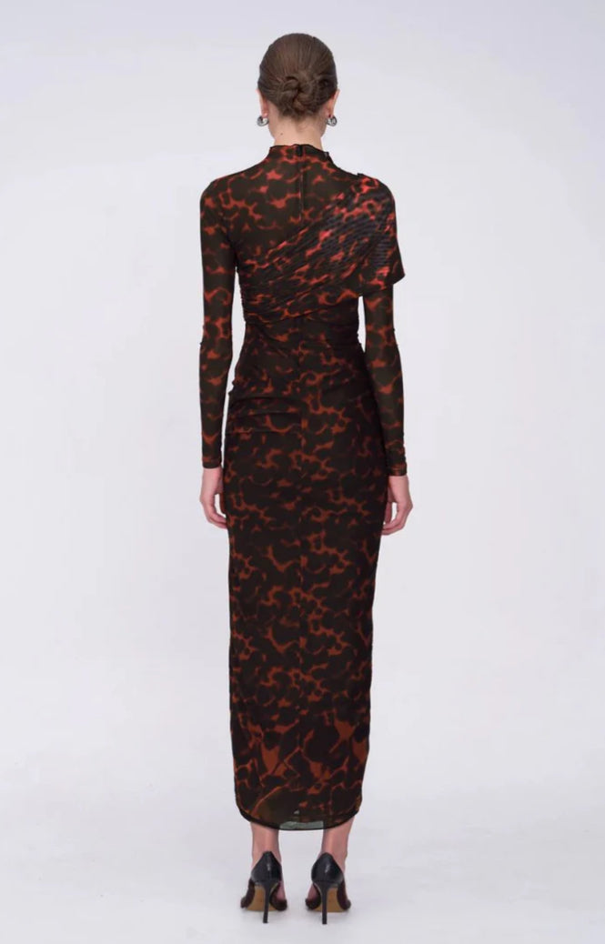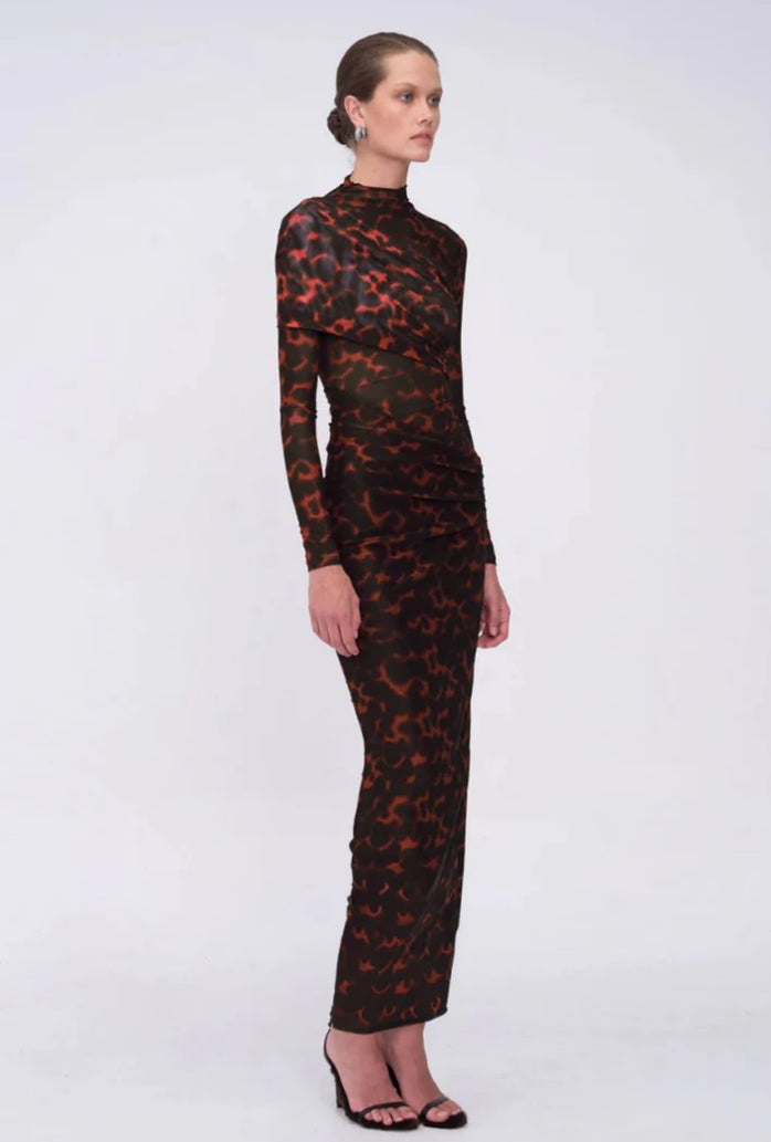 The Remi Maxi is your fast-track to feeling done without lifting a finger. With a close-cut silhouette, long sleeves, and a high neckline, it’s giving: just enough print, just enough skin, and zero time wasted. Throw on a boot, slick your hair, and get out the door.