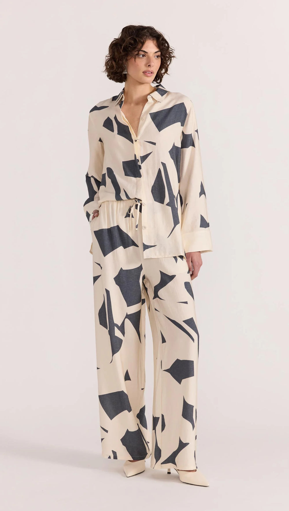 Elevate your everyday wardrobe with the Aura Shirt, a modern statement piece crafted in a soft, lightweight fabric. Designed in a relaxed silhouette, this long sleeve shirt features a button-down front, collared neckline, and an exclusive abstract print in versatile neutral tones. A perfect balance of comfort and sophistication, the Aura Shirt effortlessly transitions from weekday to weekend. Pair with tailored pants for a polished look or wear with the matching Staple The Label Aura Pants for a coordinated ensemble.