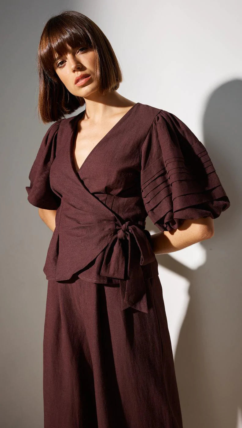 Coco Wrap Front Blouse | Espresso