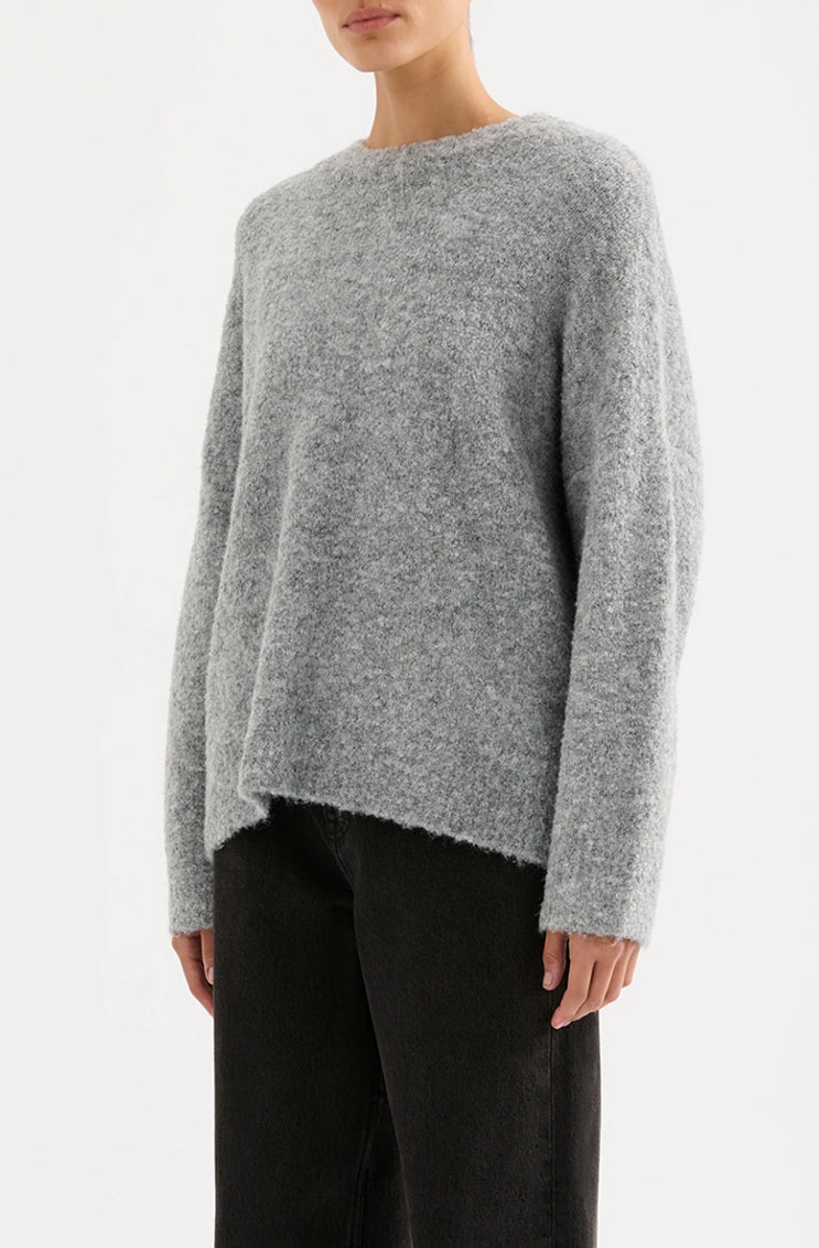 The Elias Knit is made from a recycled, heavyweight yarn which is super soft and has a slight marle effect. The fit is oversized with length finishing above the hips. Features include a crew neckline with ribbed cuff and hem.