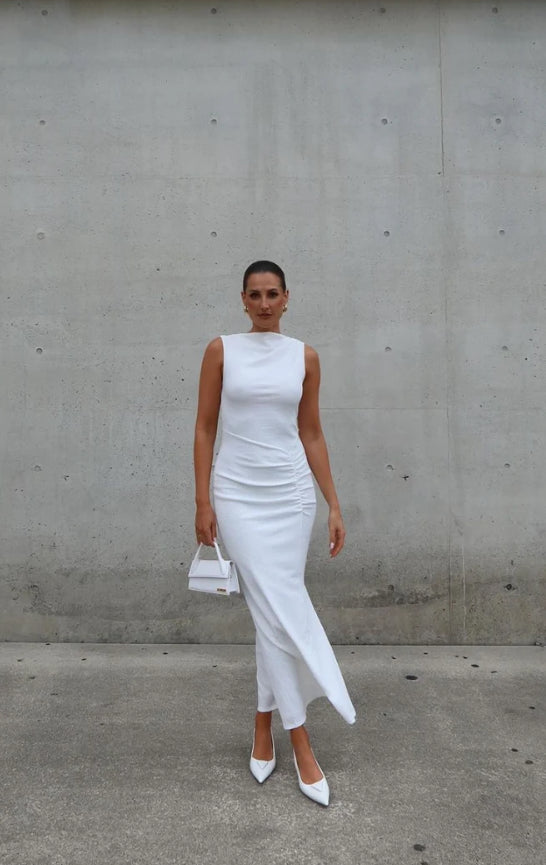 Whether it is lunch by the beach or a classy dinner party, the Jacqui Rouched Midi dress is a timeless silhouette. Pair with your favourite heels and a cute bag for the ultimate elegant outfit guaranteed.