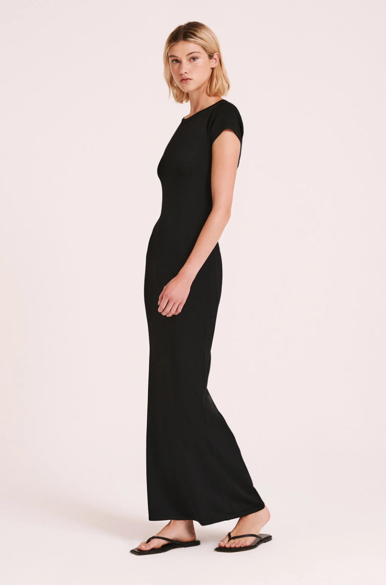 The Nabila Knit Dress is made from a lightweight viscose blend yarn which has a dry hand feel. The silhouette is slim fitting with length finishing above the ankles. Features include a crew neckline and short cap sleeves. This dress comes with a removable slip lining.