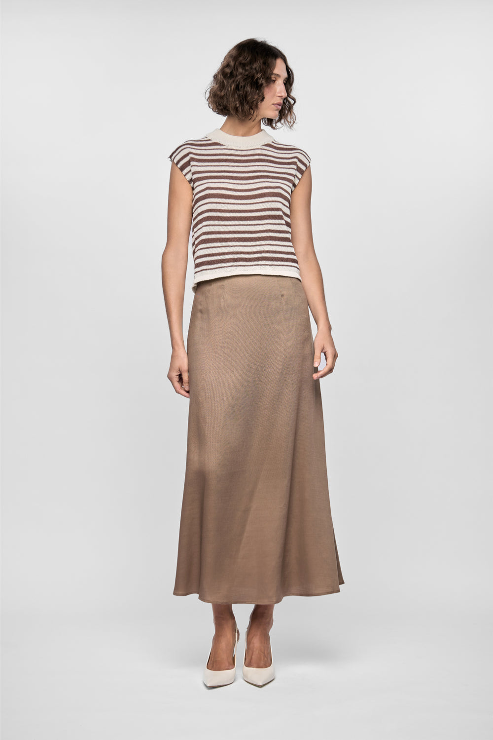 The Palmer Stripe Knit Tank is an easy sleeveless knit featuring a relaxed silhouette, rolled-edge armholes and a soft, breathable finish. Perfect for layering or wearing solo with denim or linen separates