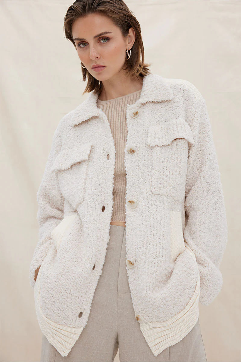 The classic Prospect Knit Shacket is a timeless fashion staple that can be worn over and over again. Our seasonal jacket features a soft alpaca wool fabrication, oversize fit and contrasted rib knit detail.