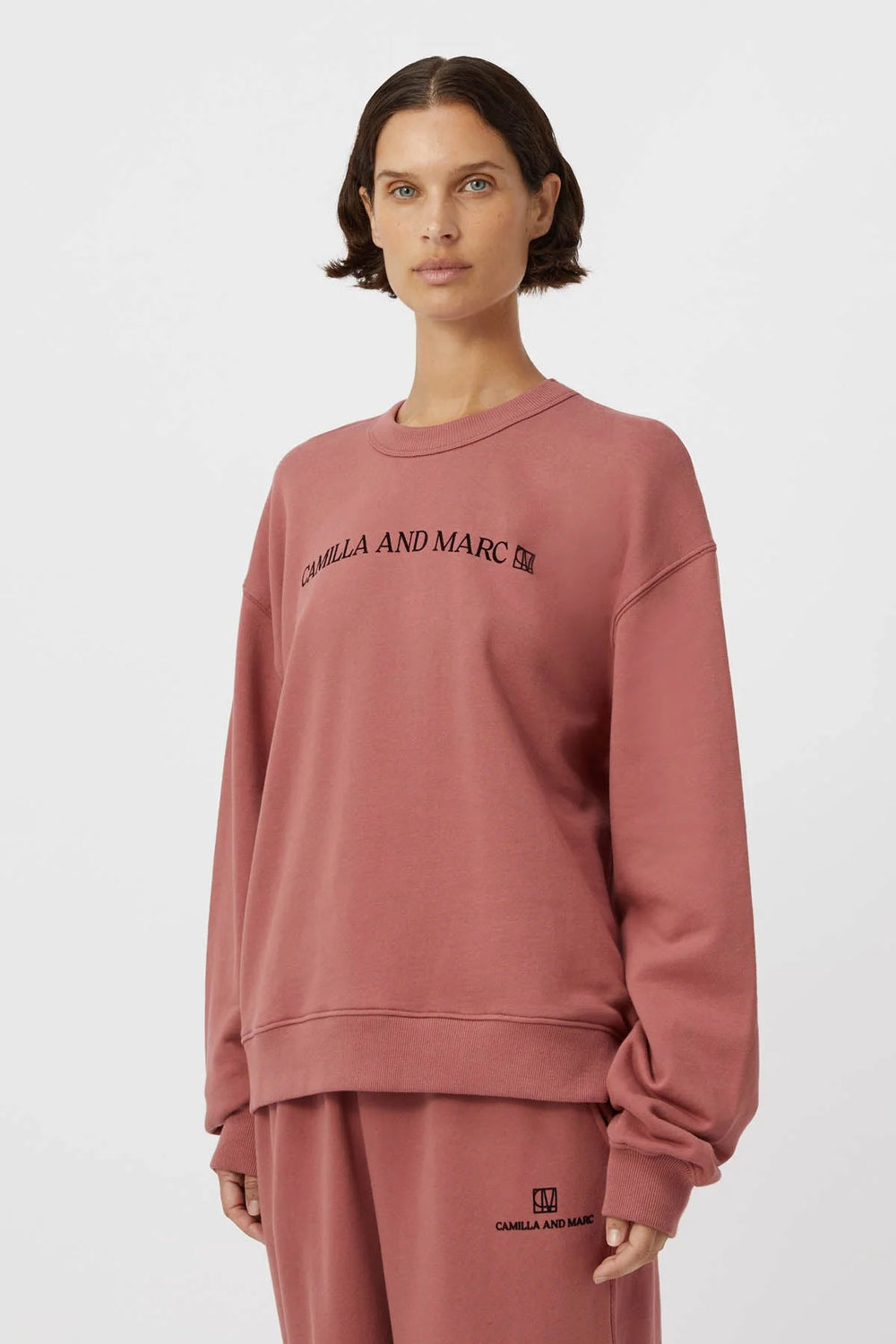 CAMILLA AND MARC Reena Cotton Crew Jumper in Dusty Pink.