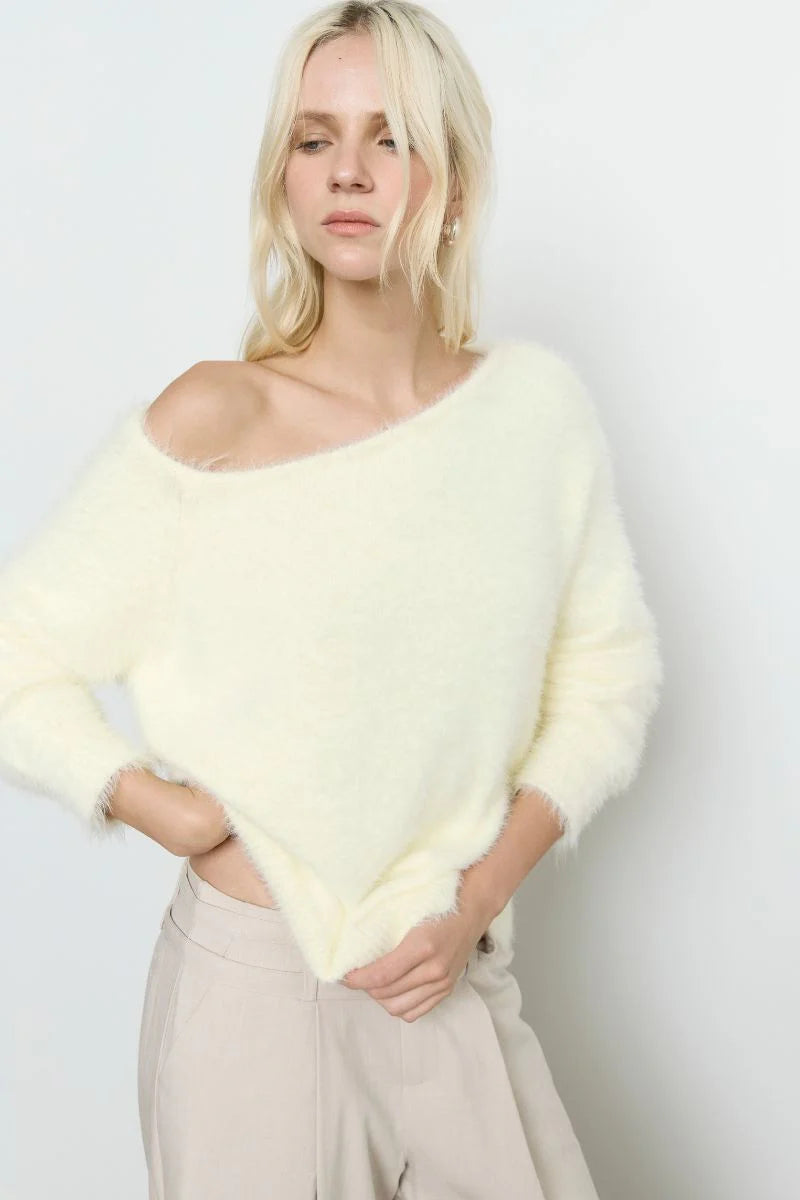 - Long sleeve fluffy knit sweater