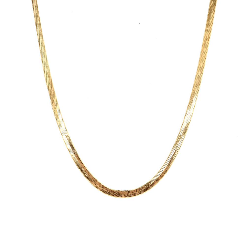 The Aeros Herringbone Chain in Gold is the directors choice for layering . Featuring an iconic flat gold chain style that emits infinite solitude.