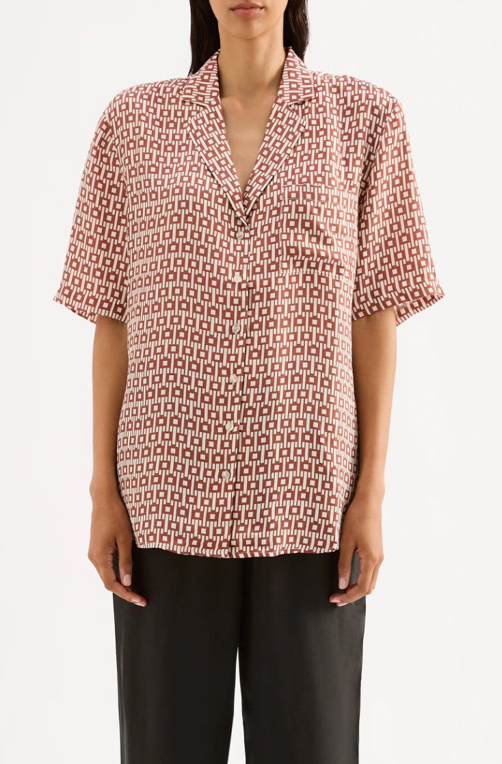 The Jasper Cupro Shirt is made in our signature cupro fabrication in our exclusive Jasper print. The silhouette is an oversized fit, with length finishing at the hip. Features include classic shirting details with back yoke and branded buttons.