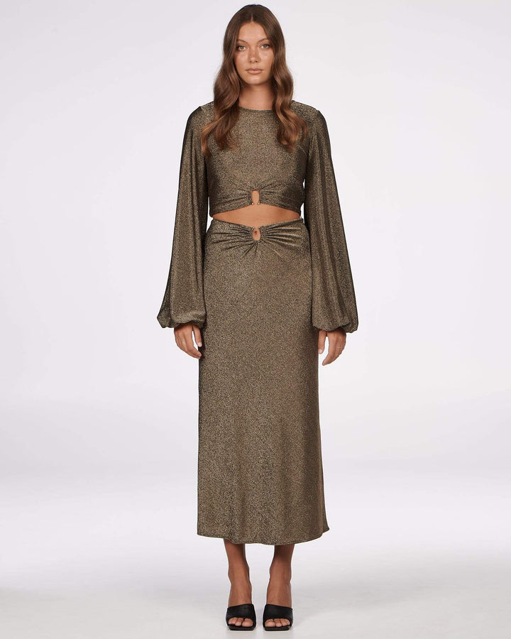 In a stunning stretch lurex – all black and gold shimmer – this showstopping sheath skirt is cut perfectly to hug your curves. Wear it for night-time with the matching Layla top and heels and you’ll be sure to turn heads.