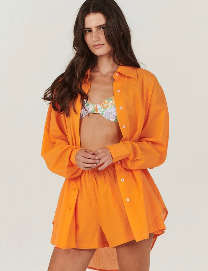 This relaxed lounge short features a high waist and vibrant sunset hue for a fun take on loungewear. Team with the coordinating Maple shirt for a relaxed weekend look.