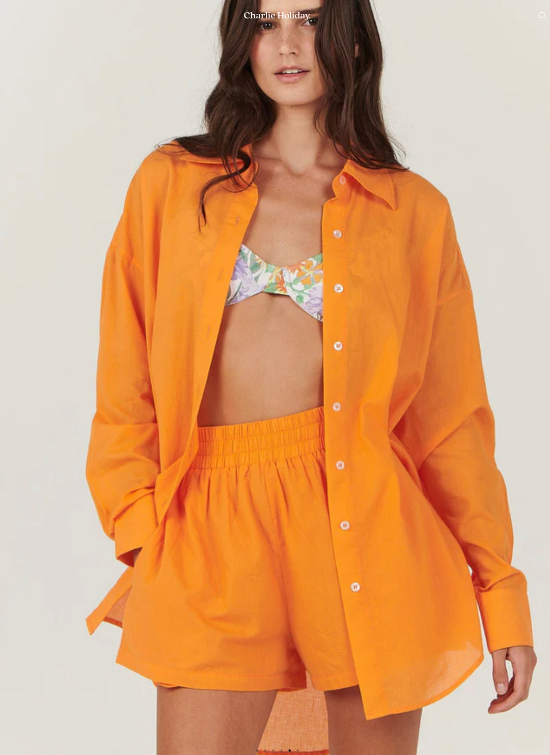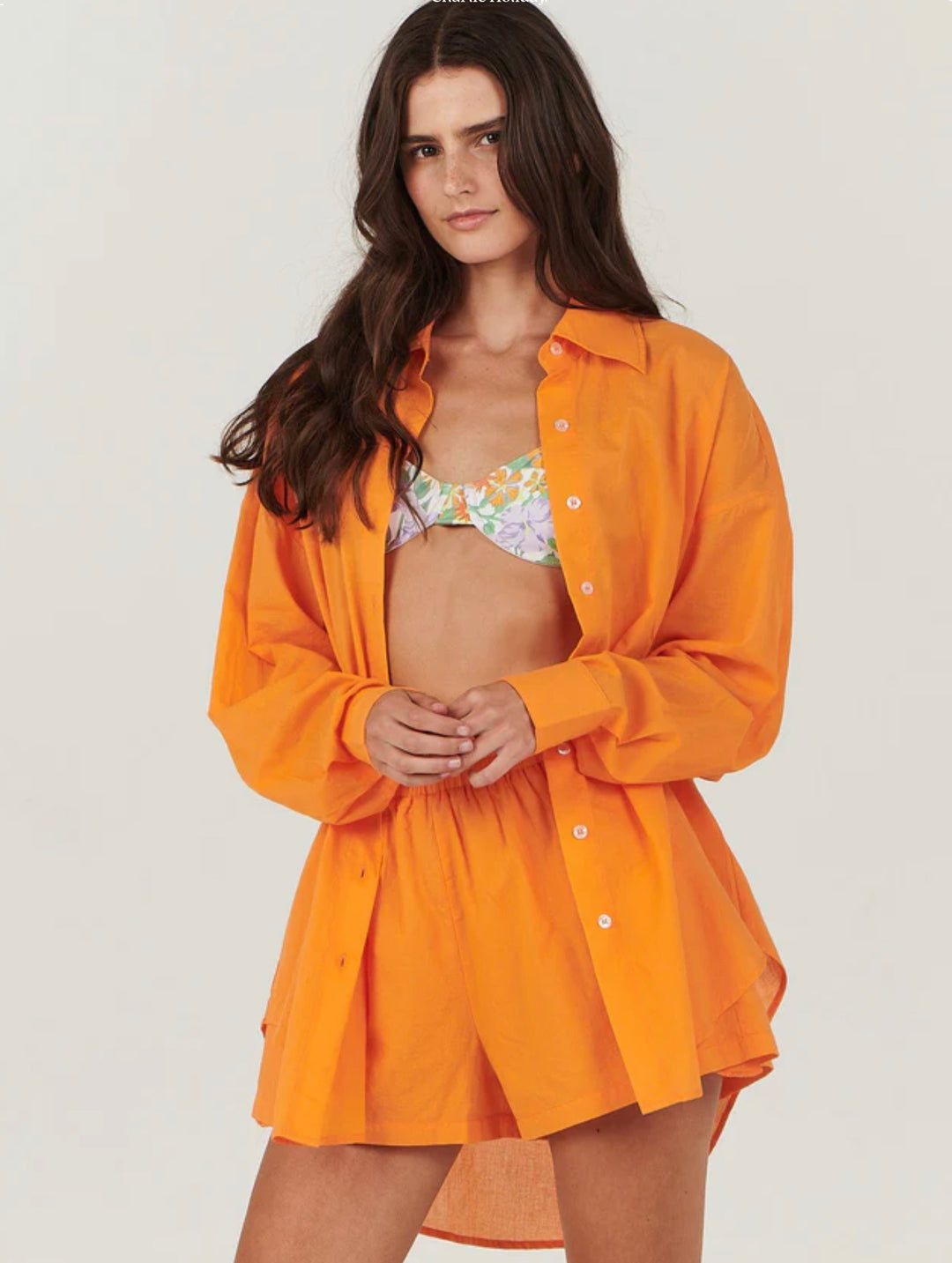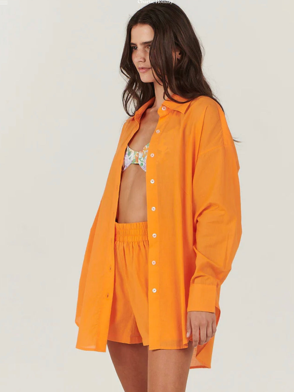 This gorgeous shirt features a softly tailored design in a vibrant sunset hue. Work it back with the coordinating Casey short for an elegant lounge look.