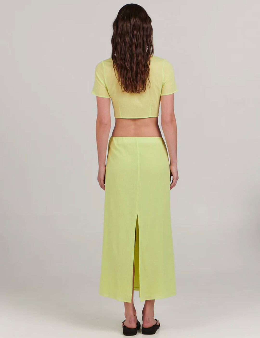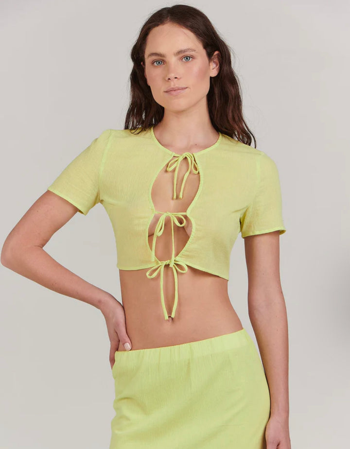 In a fine pure cotton, this sweet tie top adds a twist of lime to your look. Worn with our Zephyr midi skirt and sky-high heels it’s a guaranteed showstopper.