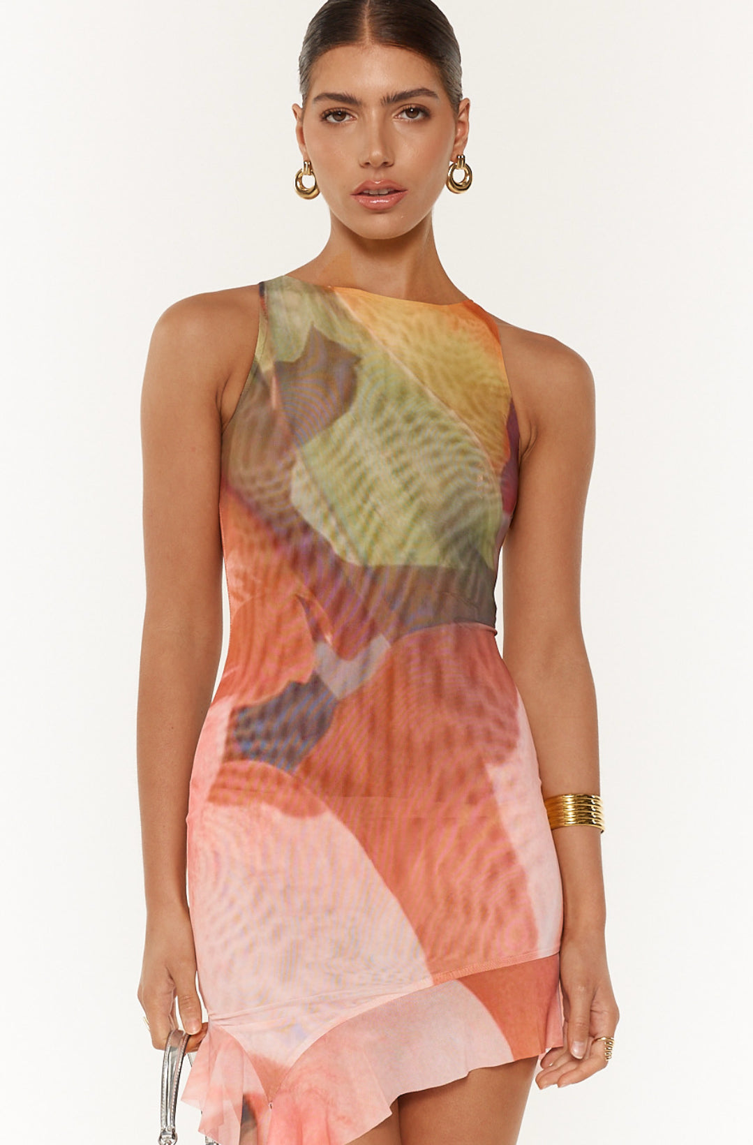 How cute, CALLIOPE Mini Dress in POSY! She will fit nice and snug rolled up in your suitcase for any adventure. Designed with a high neckline with a flowing, draped fabric detail that adds movement and elegance. The asymmetric hemline, finished with a delicate long ruffle, adds an extra layer of sophistication and flair.