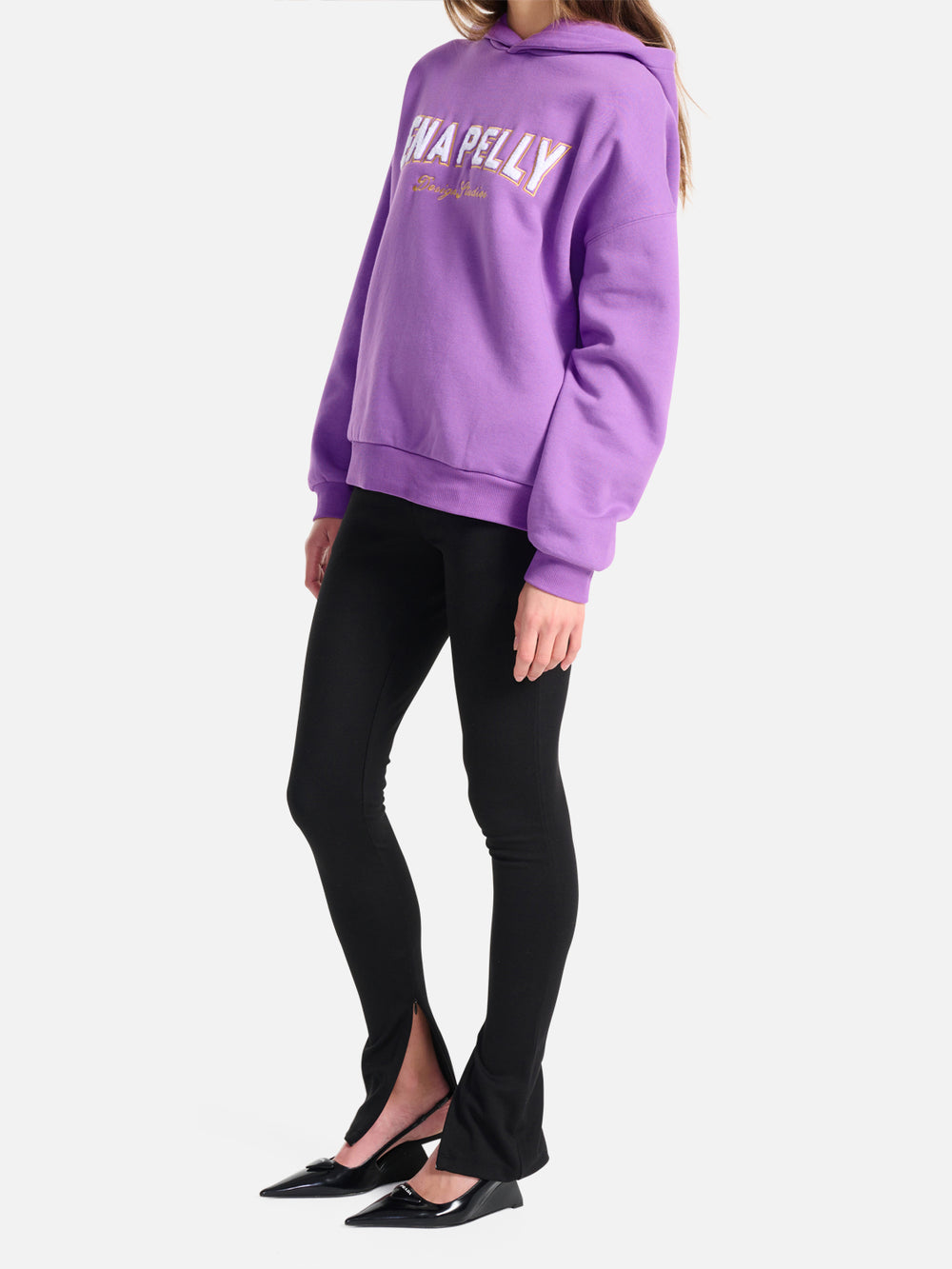 Introducing the Austin Collegiate Hooded Sweater, cut from a plush recycled fleece fabrication in a vibrant meadow violet hue. The sweater is made for a slouchy silhouette featuring a classic hood and modern sport luxe designs.