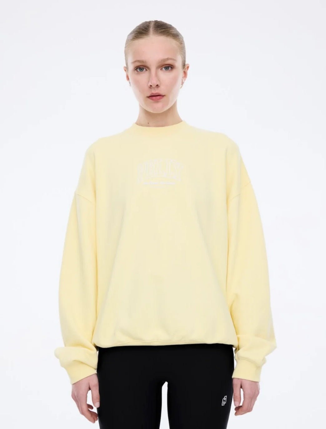 The Pelly Do Good Sweatshirt is cut in an oversized silhouette with drop shoulders for a relaxed, boxy look. finished with a bold graphic print that brings a modern edge. completed with a classic crew neckline for timeless appeal. made from a cotton-rich terry fleece for warmth and ease.