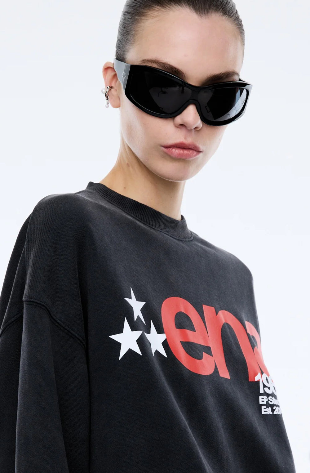 The Star Sweatshirt blends bold design with laid-back street style. Crafted from cotton-rich terry fleece in washed charcoal, it features an oversized fit and custom graphic detail. Whether layered or worn solo, it delivers effortless athleisure style.