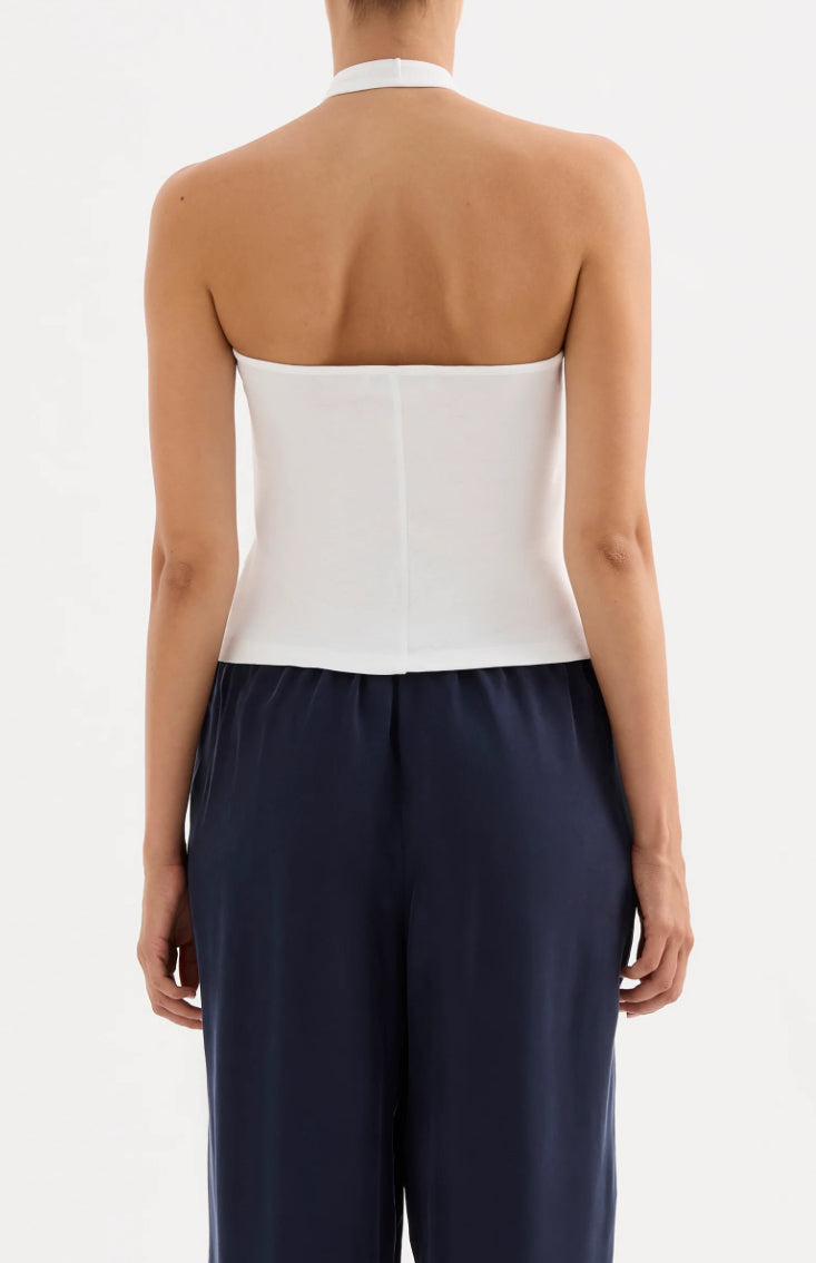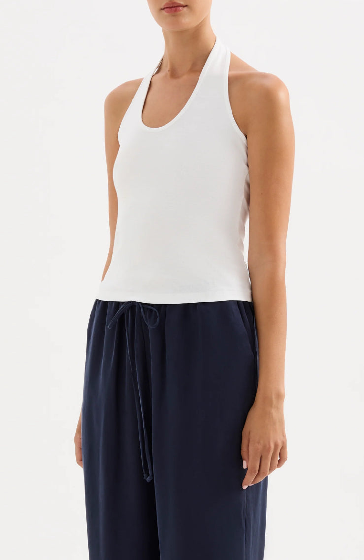 The Gaia Tank is made from a lightweight organic cotton jersey, which has a soft, breathable hand feel. The silhouette is a classic slim fitting tank finishing on the hips. Features include a thick halter neck and low scoop neckline.