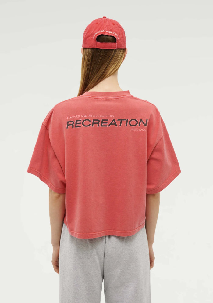 The Nomad Boxy Tee in Washed Poppy Red comes as part of our RE/CREATION Collection. Made from a lush heavy-weight 100% cotton jersey, this vintage garment dyed tee features a relaxed boxy silhouette and P.E Nation graphic prints. The ideal lounging piece, style yours with trackpants or bike shorts.