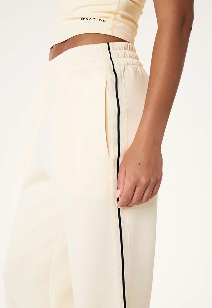 The Prelude Trackpant in Whisper White comes as part of our FUTURE MODERN Collection. This midweight ponti fabric track pant features an elasticated waistband, side pockets and a contrast taping down the side panel.