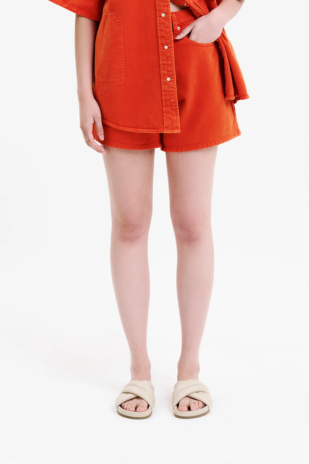The Blaise Short is made from a soft cotton denim, washed down for a breathable handfeel. Fit is high through the waist with short, slim leg. Features include traditional denim short detailing including fly front opening, jean pockets & branded back patch.