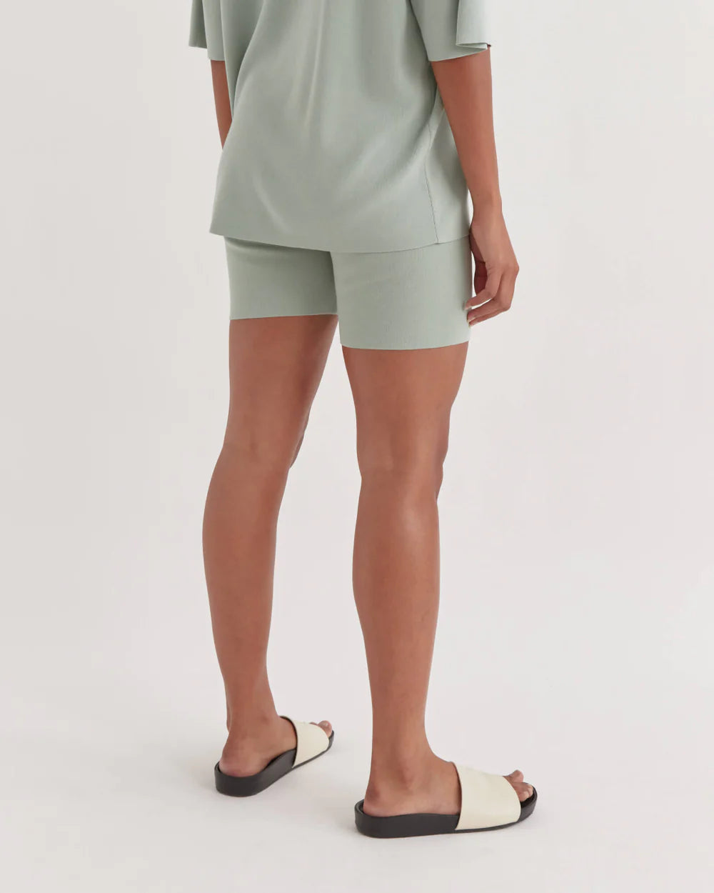 This Milano Knit biker style short in ocean green is made from a cotton and modal. pair it with our Milano Knit Oversized Tee in Ocean green for an effortless everyday look.
