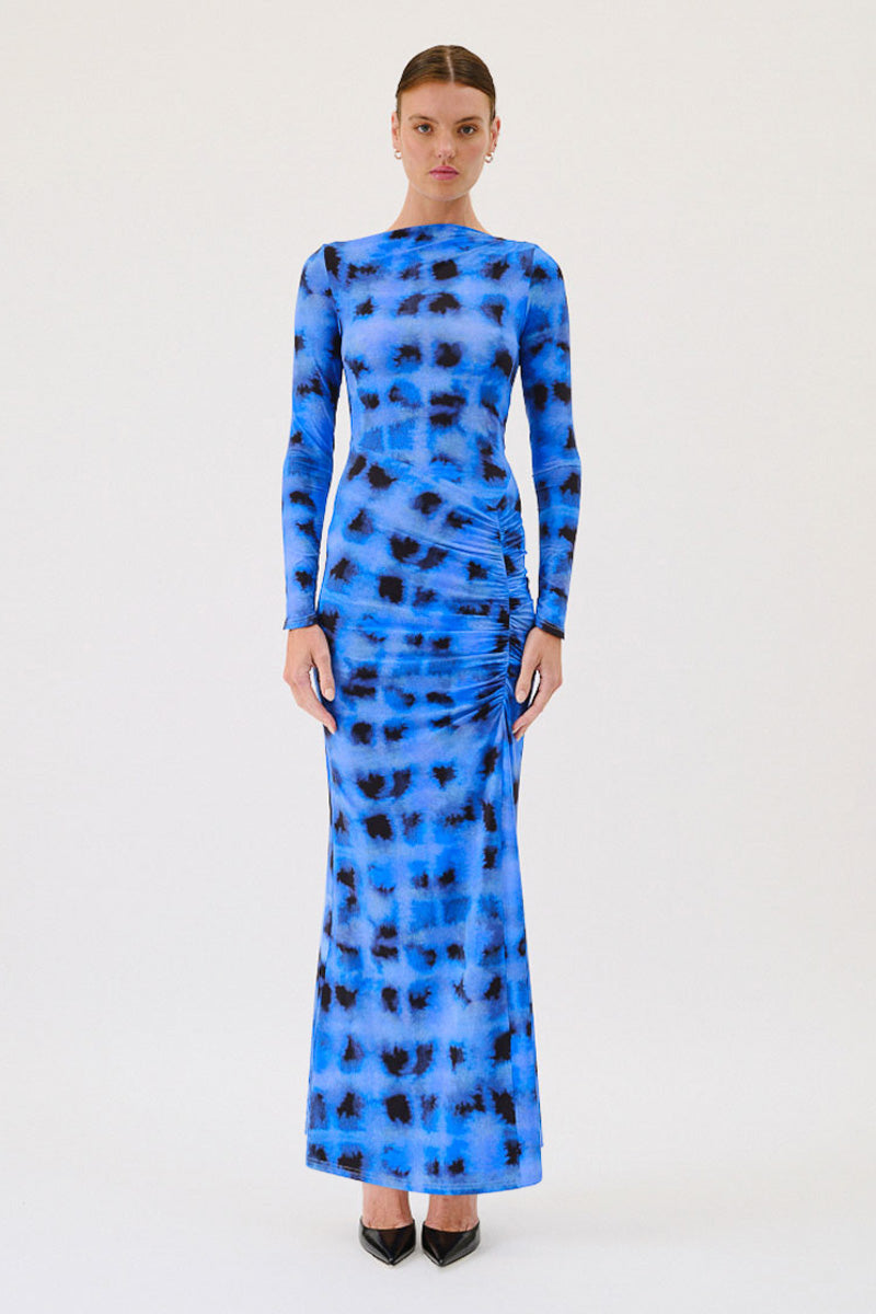 The Shibori Long Sleeve Ruched Dress is designed in Shibori Print in the royal blue hue. With its exquisite ruching details and flattering fit, this dress is perfect for evening wear, designed to enhance your natural curves, creating a breathtaking silhouette that accentuates your femininity. The stunning Shibori pattern adds an enchanting touch embracing sophistication and grace with this memorising dress.