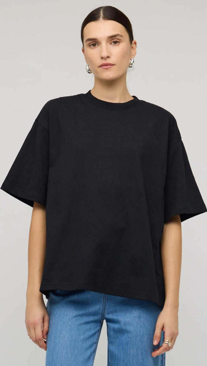 An everyday essential. The Staple Embroidered Logo Tee is an oversized, casual style featuring a minimalist embroidered logo, keeping things low-key and elevated. Made from soft, breathable cotton, it's your go-to for effortless outfitting. Wear it with denim, track pants or tailored trousers — this tee plays well with everything.