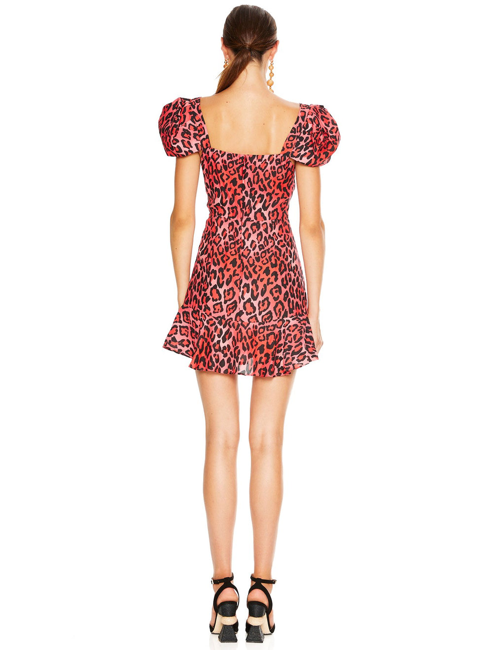 Because who doesn’t love an animal print? Embrace your inner party animal in this mini, featuring a sweet heart shaped neckline, a gathered top shoulder frill with a balloon hem finish and a functional waist tie.