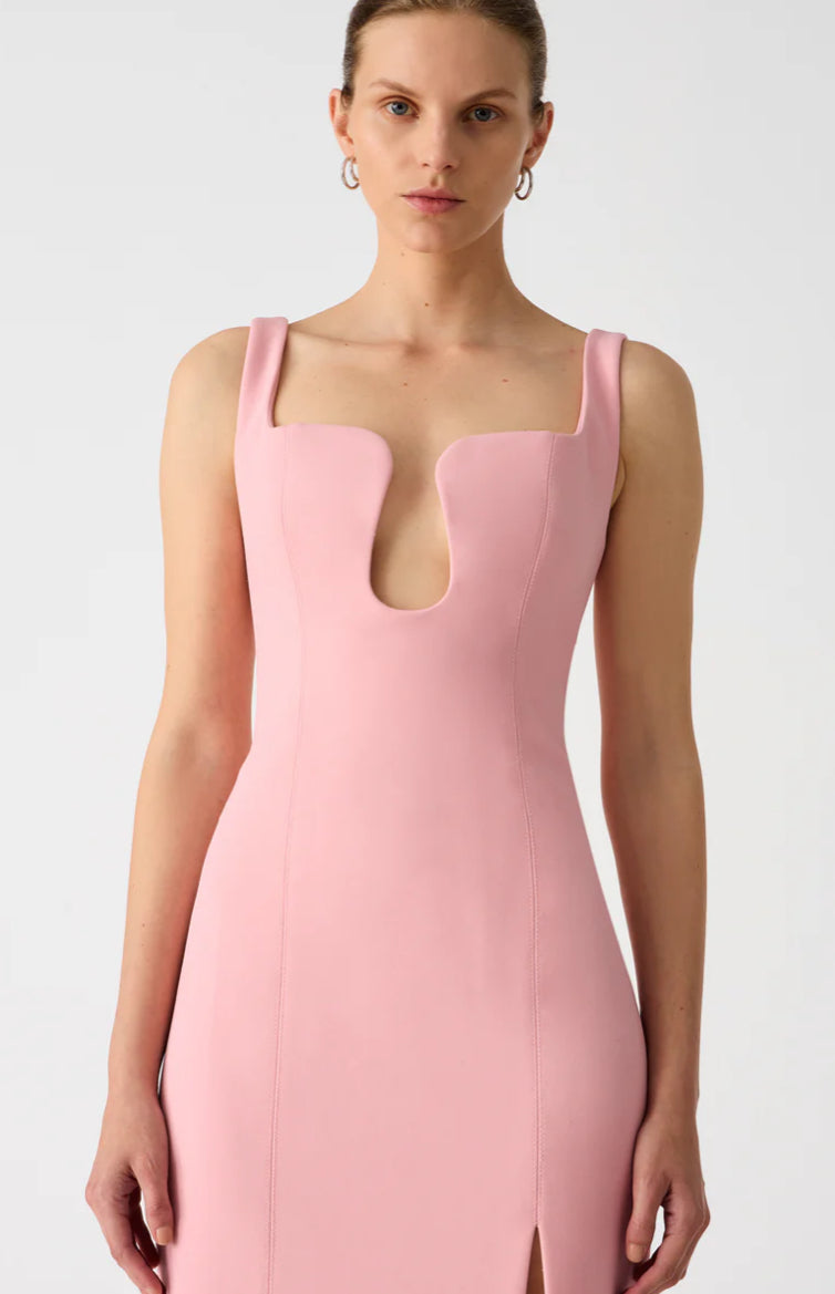 Welcome Franka, the gown that exudes sophistication. Curated in signature MISHA bonded crepe, slim fit body-con silhouette and curved peephole at the décolletage, this gown promises to take your breath away. Elevate your night by pairing Franka back with open toe stilettos and diamanté jewellery.